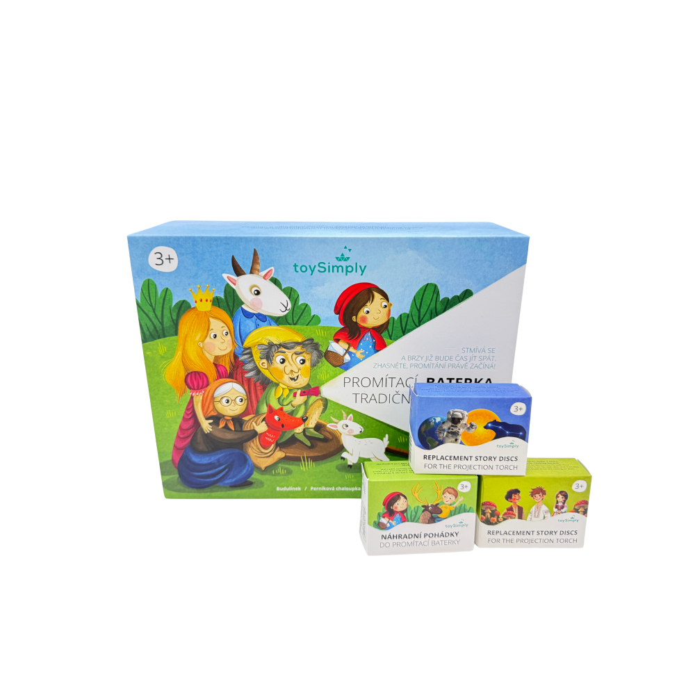 Doplňte baterku o další sady promítacích kotoučků – každá přináší nové příběhy a ilustrace. Děti si tak mohou rozšiřovat svou pohádkovou sbírku a znovu a znovu objevovat svět fantazie.
