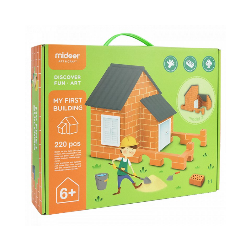 Děti pracují s materiály podobnými těm skutečným – používají mini-cihličky z pálené hlíny, okna, dveře, střešní panely a cement na bázi škrobu, který se míchá s vodou a nanáší pomocí malé lžíce.