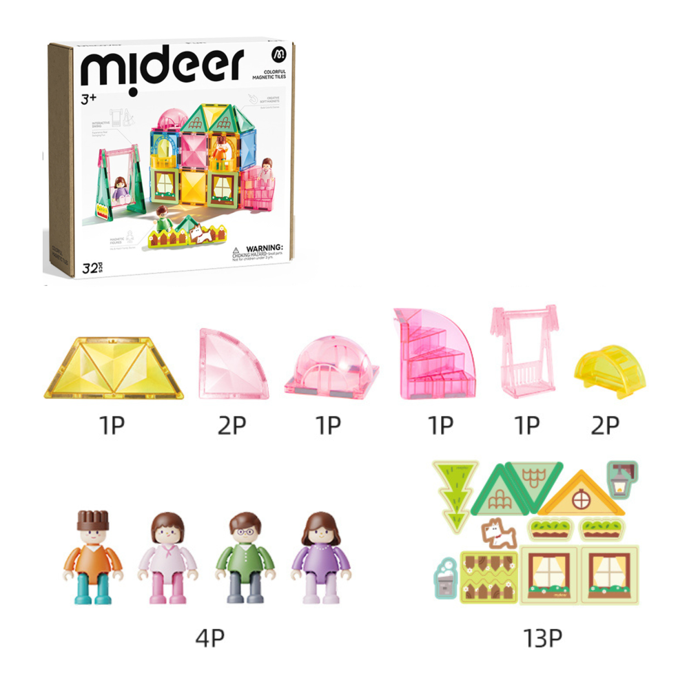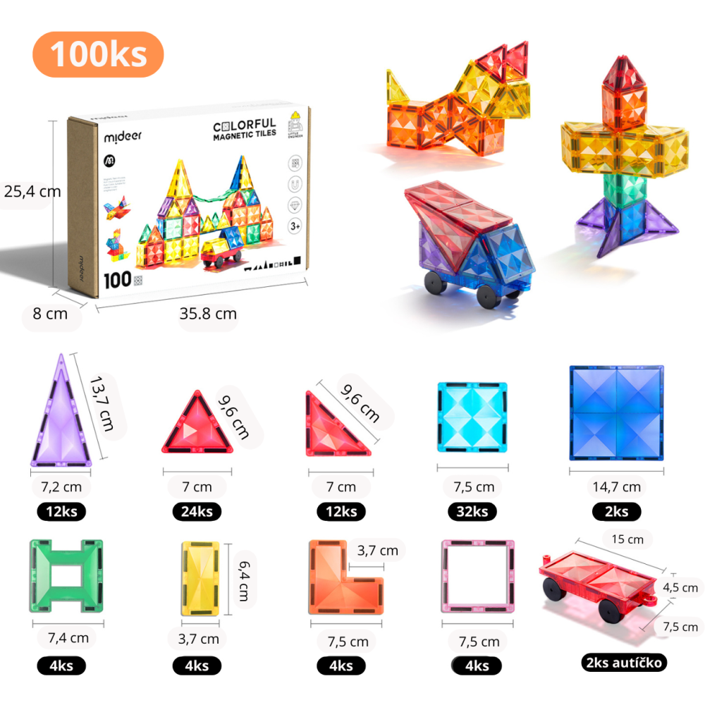 Oblíbená 100ks magnetická stavebnice Mideer s krásnými průhlednými dílky + sada Naše rodina zdarma – dohromady 132 dílků pro nekonečné příběhy a stavění.