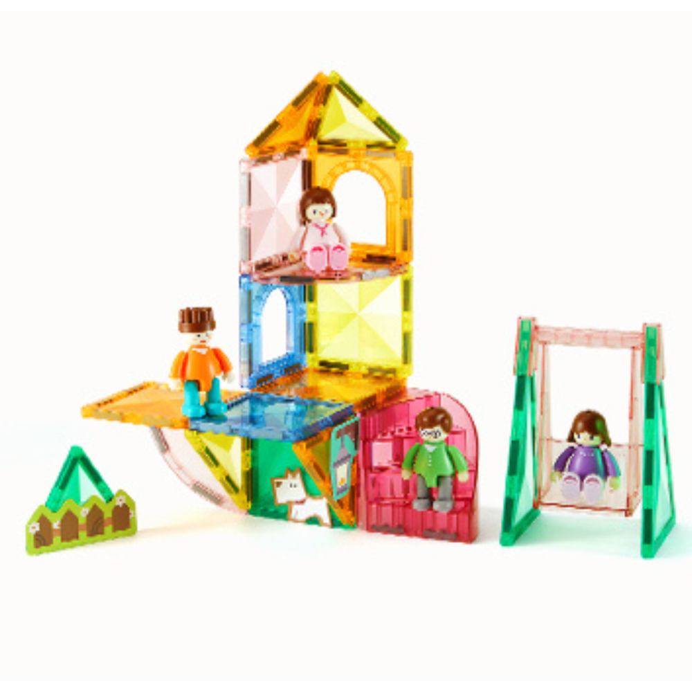 Děti mohou popustit uzdu své fantazii a vytvářet 2D i 3D stavby. Tato originální magnetická stavebnice pro děti nabízí i figurky osob, díky nimž si malí stavitelé mohou vytvářet vlastní scény ze života rodiny.
