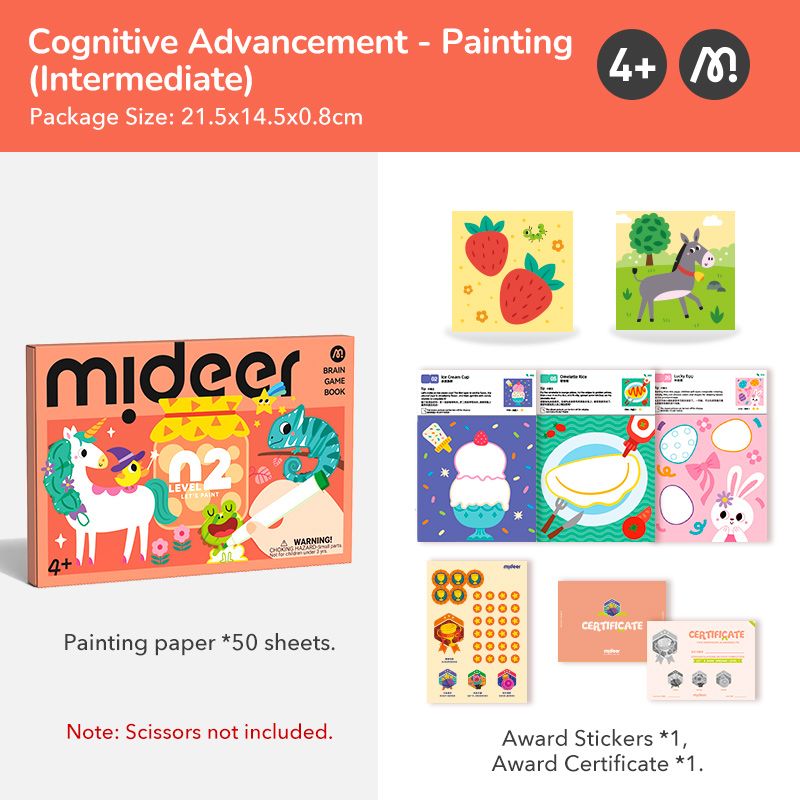 Omalovánka je tvořena 50 listy úkolů s předlohou a pracovním obrázkem — dítě vybarví vzor, dokončí obrázek, spojí body či vyplní geometrické tvary. Vše přehledně - úroveň středně pokročilý.