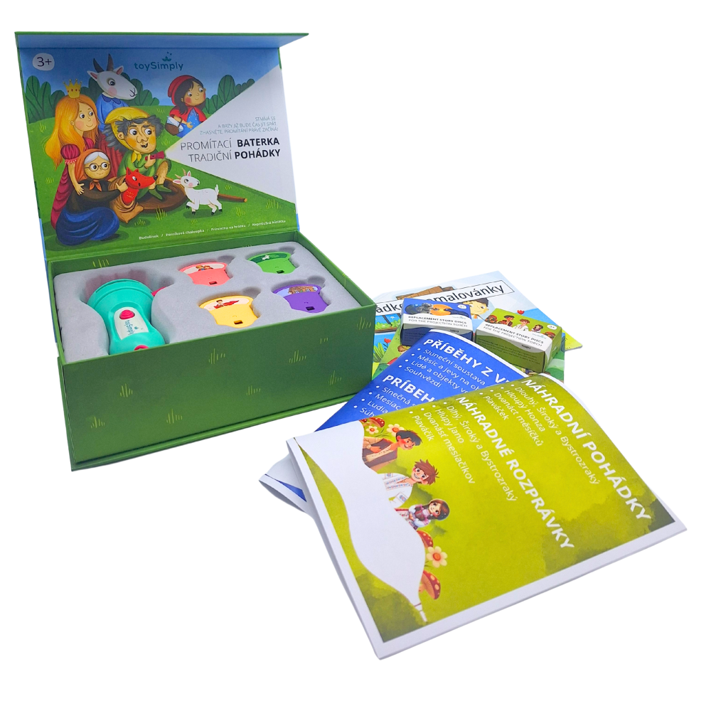 Sada originálnych disketiek s rozprávkami je určená výhradne pre rozprávkovú baterku Toysimply a prináša štyri obľúbené česko-slovenské rozprávky, ktoré deti milujú.